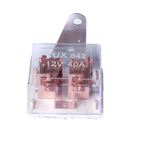 ین قطعه در واقع همان رله است. رله مانند یک کلید عمل میکند و با دریافت فرمان، ولتاژ را وصل کرده و منبع ورودی ولتاژ و خروجی(مصرفی) از طریق رله با هم متصل میشوند. در خودرو ،بصورت استاندارد، رله در مسیر چراغ ها نصب نمیشود چون تمام اجزای سیم کشی مانند سوکت ها، دسته راهنما، لامپ، سیم، مطابق وات استاندارد 55 وات تولید میشوند